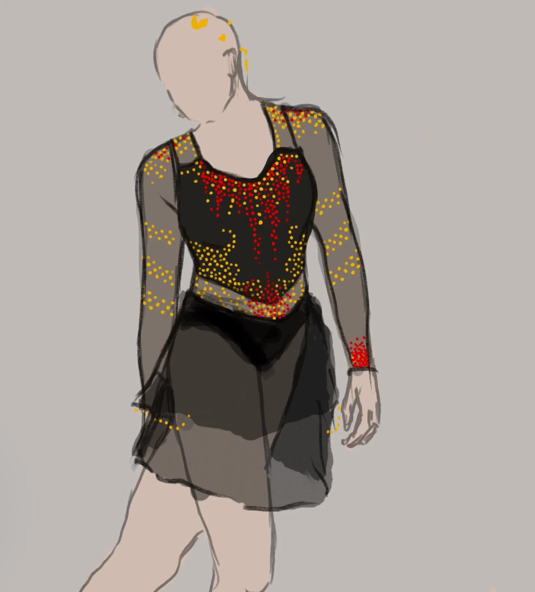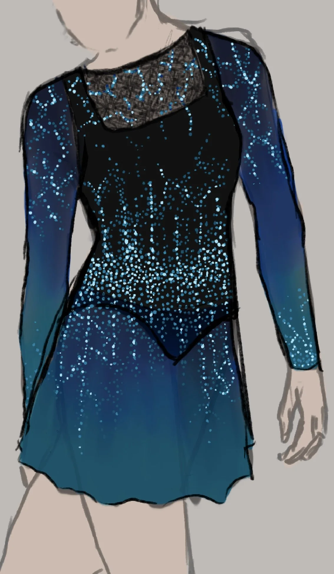 I started figure skating when I was 16, and discovered that I loved making costumes almost as much as the sport itself. All of the costumes pictured here were made from second-hand leotards that I sewed skirts and sleeves onto and glued rhinestones on.