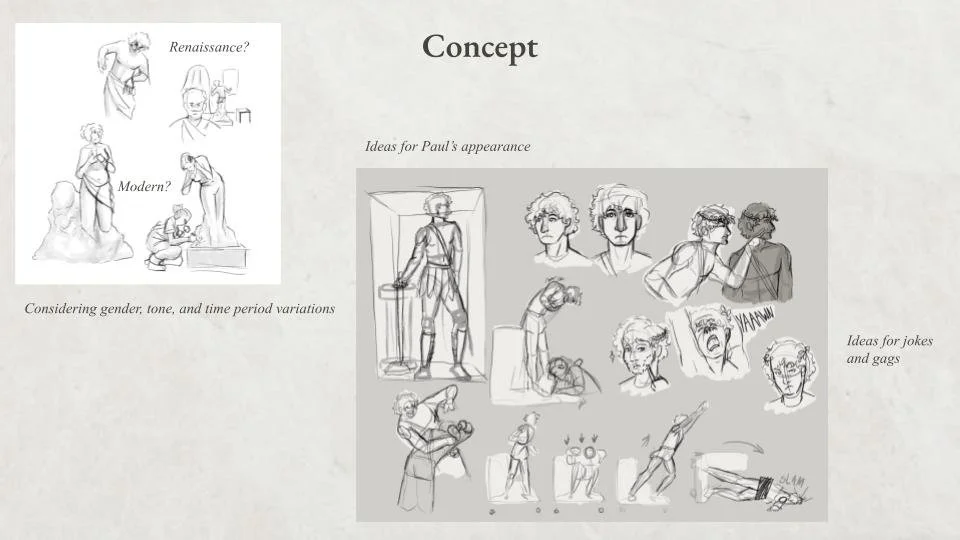 Set in Stone was the final project I completed during my time at Nottingham Trent University; an animated short which needed to tell a story in exactly five shots. Three and a half months were spent completing my short film, under the instruction of Robert Sczerba, Andy Love, and Jeremy Moorehead. The story follows a sculpture named Paul, who comes to life and tries to make his own path against the wishes of his maker.
